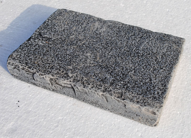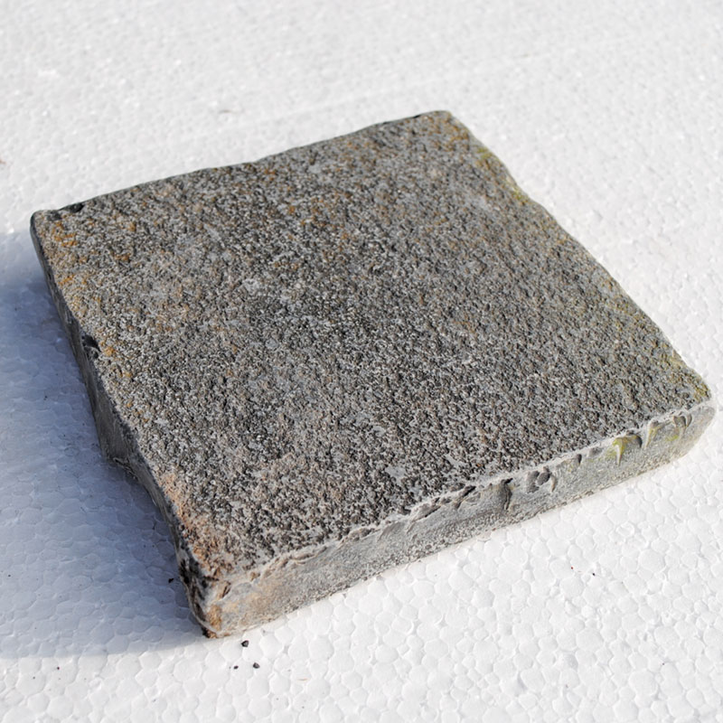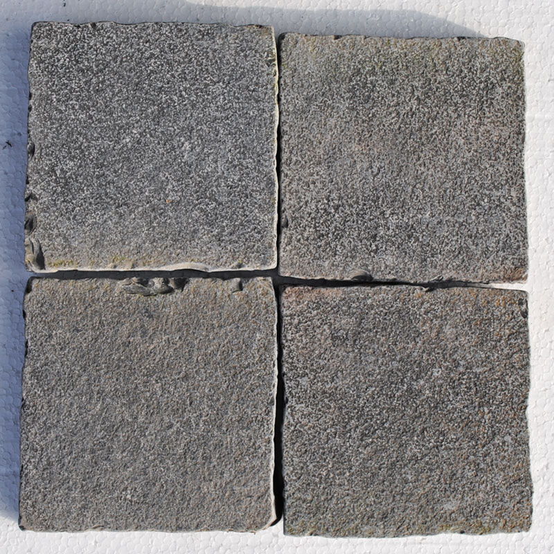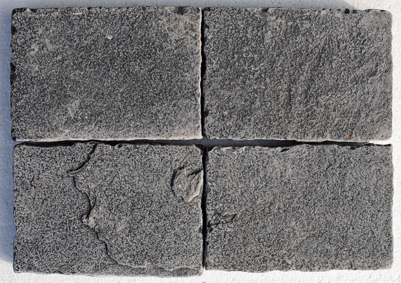 De France Noir pavé anticato heeft een natuurruw (gekloven) oppervlak. De tegels worden bijkomend licht getrommeld waardoor ze een licht verouderd lijken.