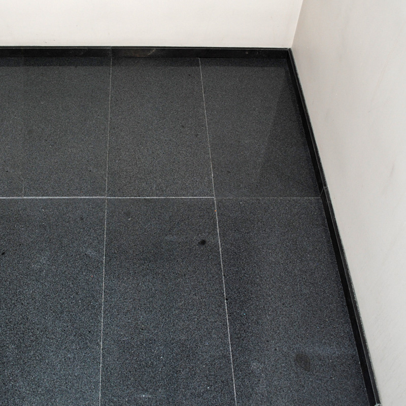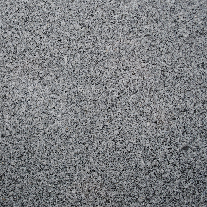 Deze donkere graniet is erg hard, slijtvast en weinig poreus. Ze kan in elke ruimte aangewend worden. De steen is identiek aan de Grey Granite gestraald waar de kleur grijs is geworden door de oppervlakte bewerking.