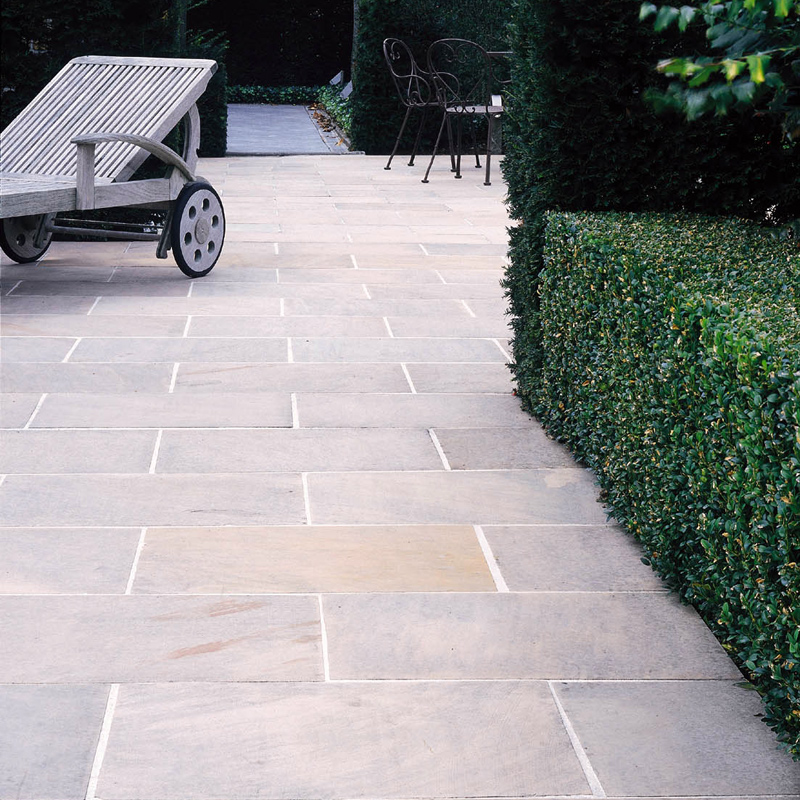 Deze beige-roze zandsteen bestaat in tal van afmetingen en kan zowel binnen als buiten geplaatst worden. Het oppervlak ik geschuurd. De dikte van de tegel varieert meestal tussen de 1.5 en 3 cm.