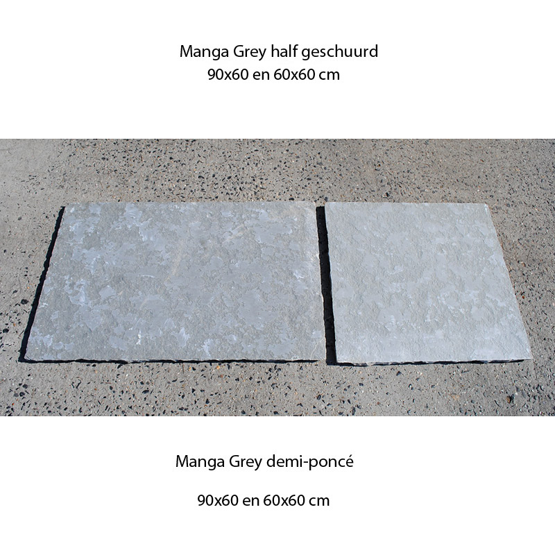 Deze marmer heeft een half geschuurd oppervlak wat betekent dat het oppervlak niet volledig vlak is. Er zijn nog oneffenheden (putjes) aanwezig. De randen zijn gehakt. De dikte is variabel.