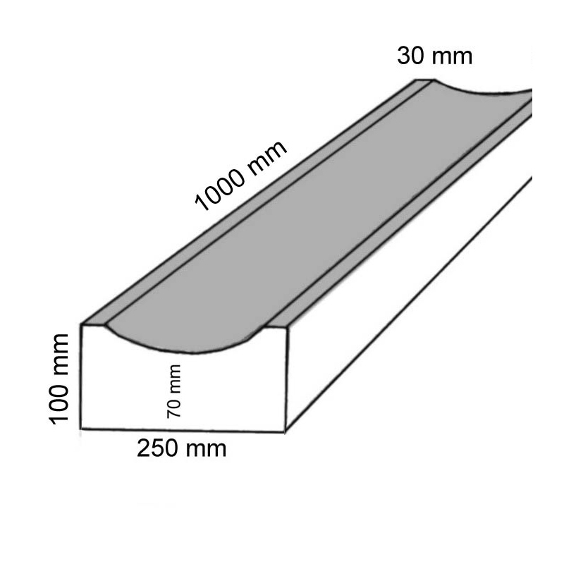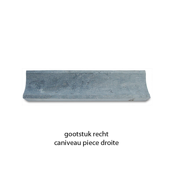 Deze rechte gootstukken in Ocean Blueustone hebben een dikte van 10 cm, een breedte van 25 cm. Zowel de rechte stukken als de hoekstukken zijn verkrijgbaar.