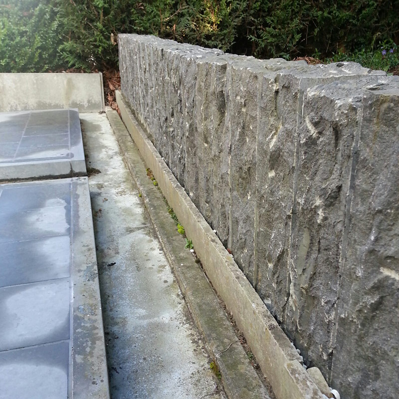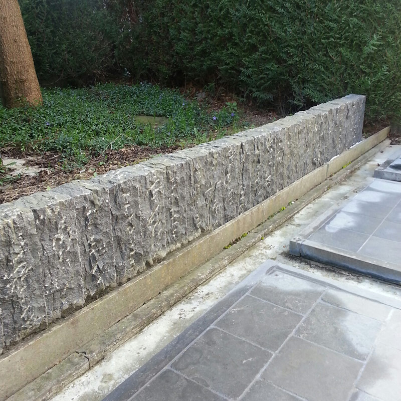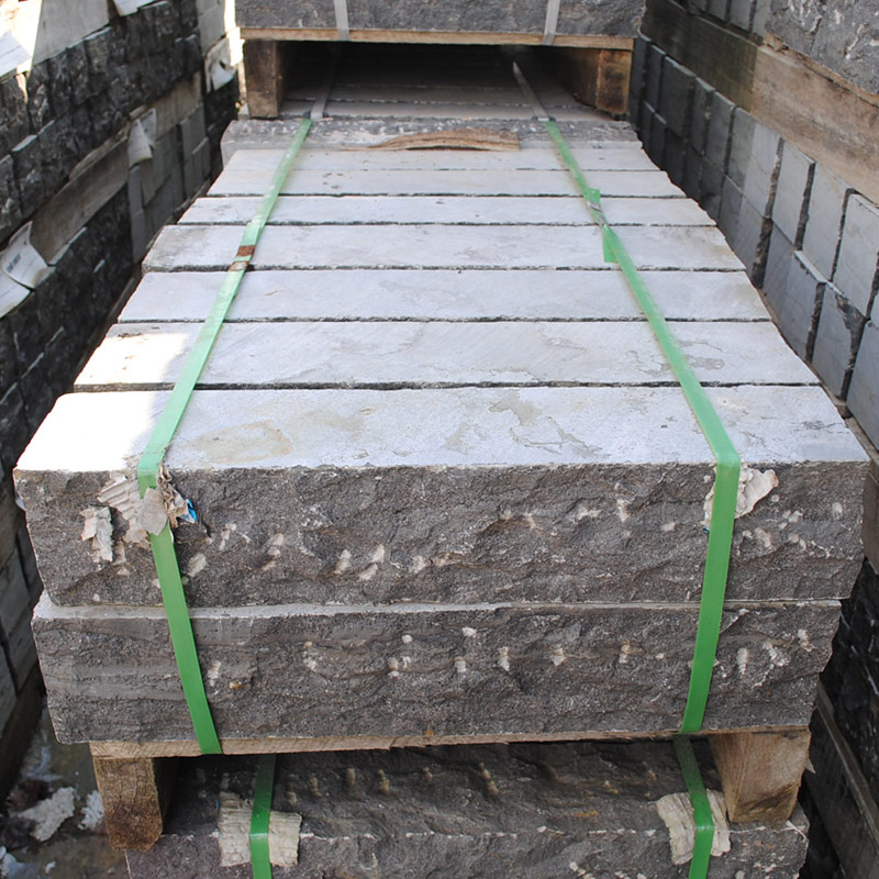 Deze palisades is Ocean Bluestone worden verkocht in een pakket van 16 stuks : 1 hoekstuk + 15 gewone stukken. Het hoekstuk is aan 3 zijden gekloven. De 15 andere stukken zijn aan 2 zijden gekloven en 2 zijden gezaagd. De palisades zijn verkrijgbaar in 3 lengtes.
