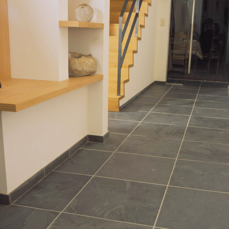 Deze donker groene leisteen heeft een natuurruw oppervlak. Dit betekent dat het oppervlak gekloven is. De randen zijn gezaagd. De tegels worden gekalibreerd op 10mm dikte waardoor ze gemakkelijk kunnen verlijmd worden.