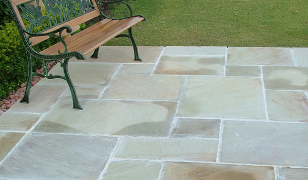 Deze Indische zandsteen heeft een licht groene kleur. Het oppervlak ik geschuurd en dus effen. Het oppervlak vertoont minder structuur en is minder ruw dan de gekloven versie. De randen zijn gehakt. Ze past perfect op uw terras, rond het zwembad maar ook binnenshuis.